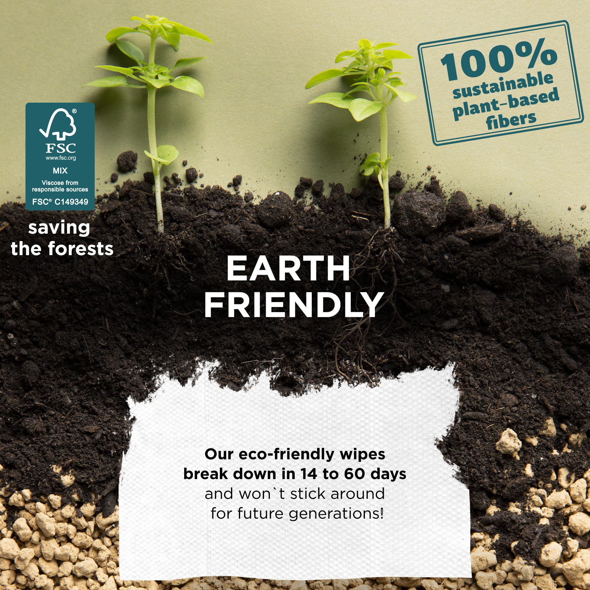 • 🍀GENTLE ON THE PLANET – 100% sustainable plant-based fibers. Contribute to the conservation of ecosystems throughout the world by making the eco-smart switch to plant-based body wipes. Fully compliant with the Forest Stewardship Council (FSC) – which promotes environmentally appropriate, socially beneficial, and economically viable management of the world’s forests.