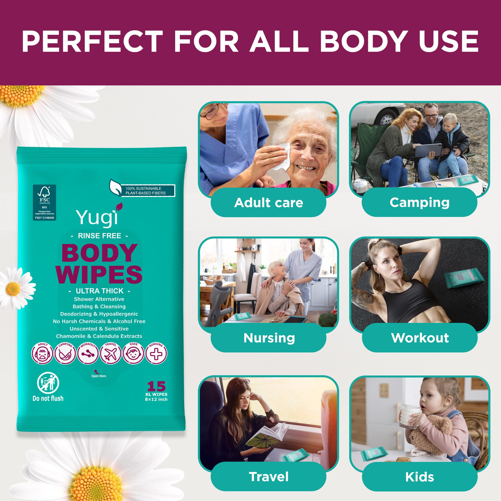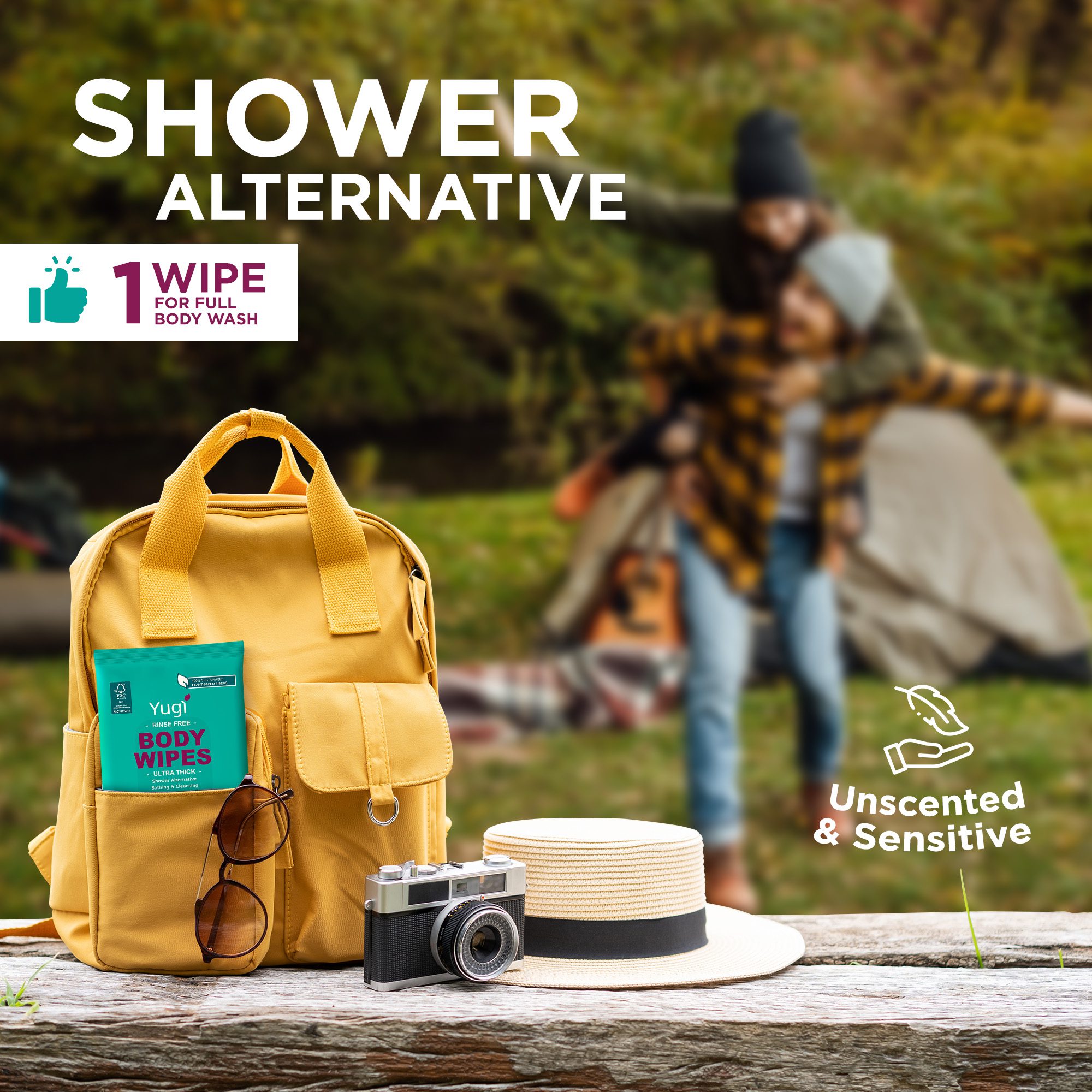 • 🛁SHOWER ALTERNATIVE – Rinse-free extra moist bathing wipes, perfect shower alternative, whole body cleansing, ideal for outdoor adventuring, traveling, camping, gym, and any time a shower or wash facilities are unavailable.